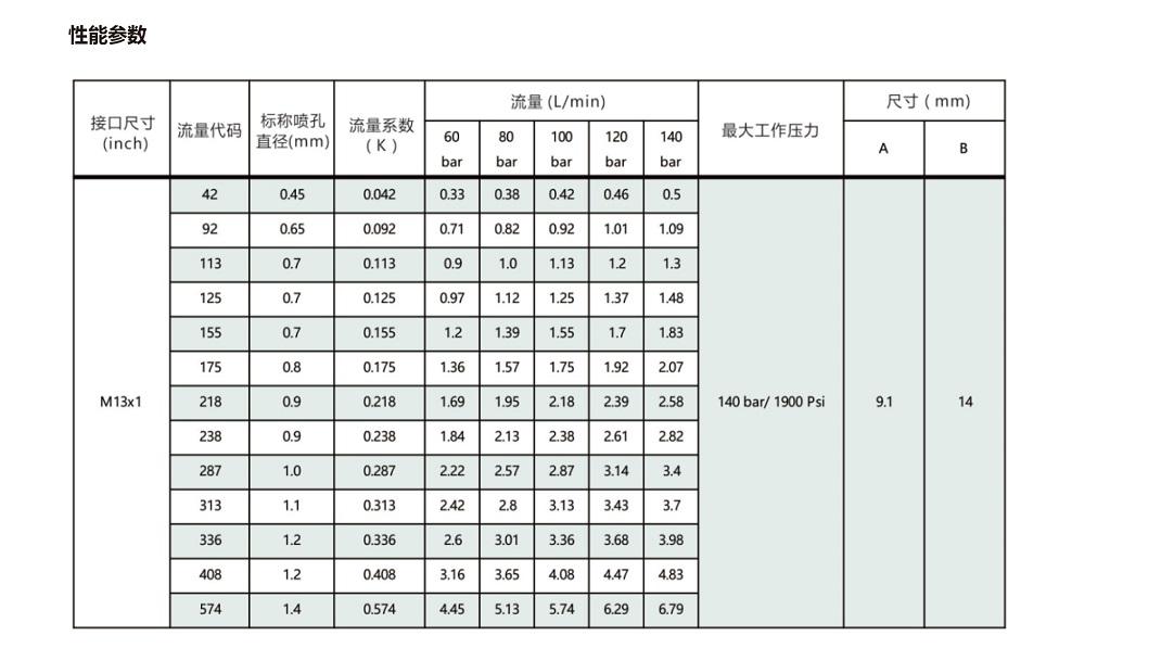 噴霧粒徑:100bar壓力下,Dv90小于90微米