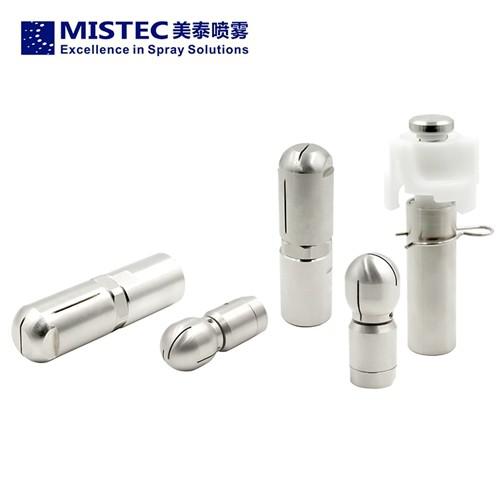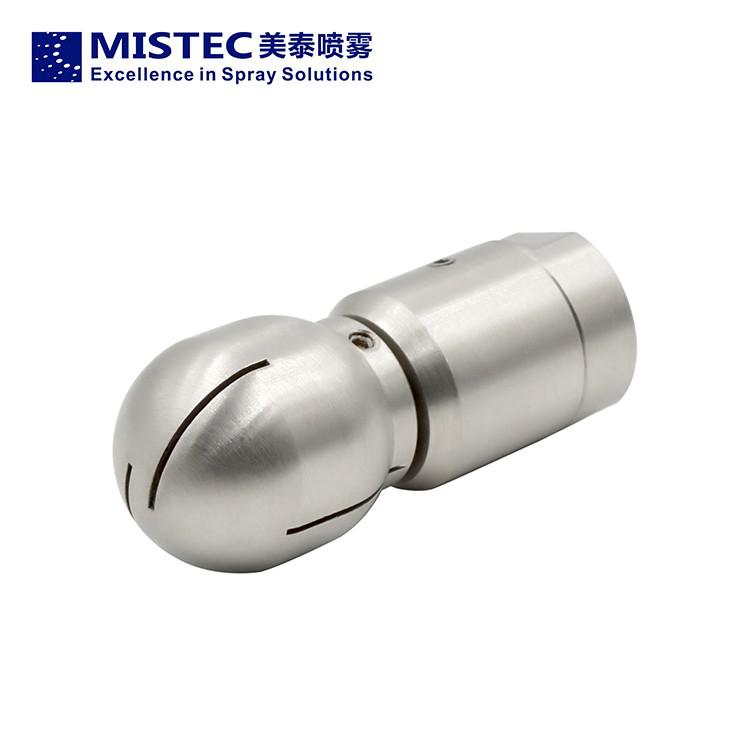 緊湊型噴嘴可通過直徑25毫米的孔,兩個扇形噴頭口的特殊位置使其產(chǎn)生自動轉(zhuǎn)動力,提供側(cè)面噴射。在頂部加開口,提供完整球面的噴射覆蓋。