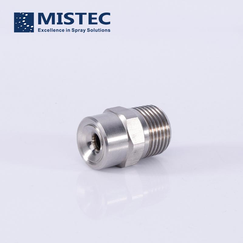 1.噴霧形狀為實心錐形,流量分布均等的的廣角實心圓錐形噴嘴。噴角為120°,因此比一般的噴嘴的噴霧面積廣。