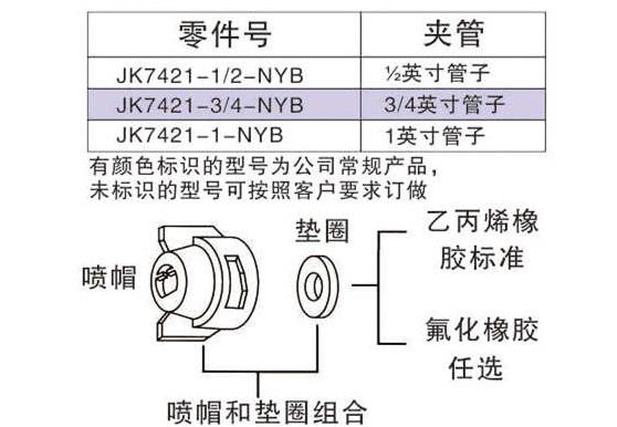 1:墊圈標(biāo)準(zhǔn)材料是乙丙烯橡膠,也可選用氟化橡膠。墊圈在噴射帽內(nèi),并固定在噴頭上面。