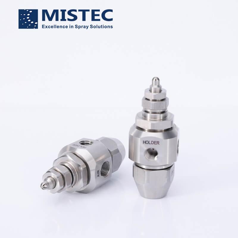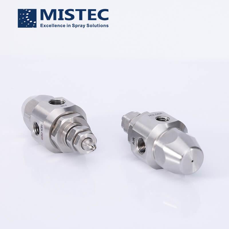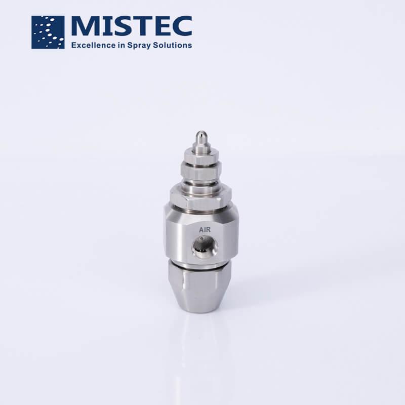 空氣霧化噴嘴噴頭的特殊的內(nèi)部結(jié)構(gòu)設(shè)計能使液體和氣體均勻的混合。能夠調(diào)節(jié)液體流量,在不改變空氣壓力和液體壓力的環(huán)境下,同樣可以產(chǎn)生合乎要求的噴霧。每一種噴霧裝置均由空氣帽和液體帽組成,能夠提供扇形和圓形兩種噴霧模式。噴頭產(chǎn)生的微細(xì)液滴噴霧,能對周圍環(huán)境發(fā)揮極好的加濕作用。部件可以互換,拆裝簡便。