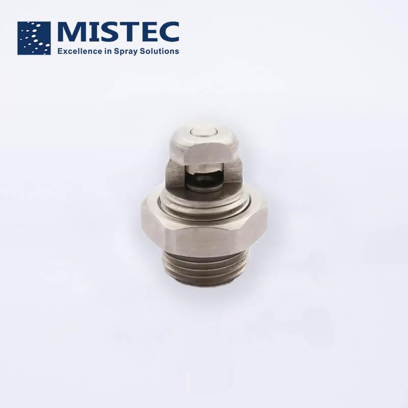 噴口有異物阻塞時(shí),噴嘴體內(nèi)會(huì)自動(dòng)增大壓力,促使口徑放大,自動(dòng)排出異物后,噴嘴口徑會(huì)自動(dòng)恢復(fù)正常噴霧狀態(tài)。噴嘴軸心一致設(shè)計(jì),便于數(shù)個(gè)噴嘴的位置安排